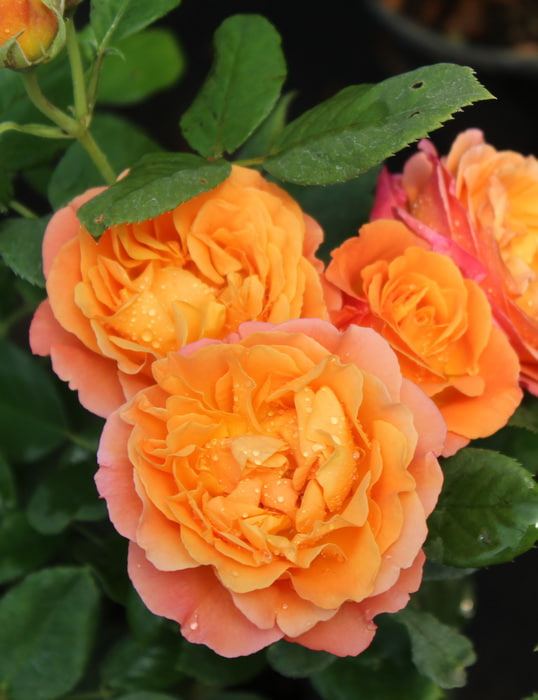 Цветки оранжево-жёлтые с розовыми краями, красивой формы, очень крупные. Обилие одиночных цветков на длинных прямых стеблях. Цветет весь сезон. Используется как в групповой, так и в одиночной посадке. Отлично подходит для срезки.
