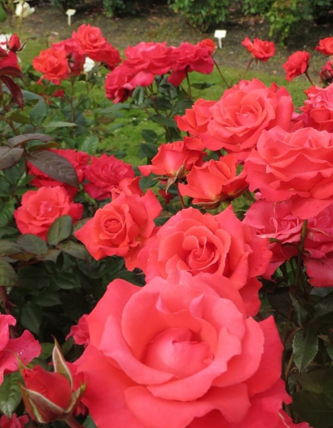 Куст сильный, хорошо разветвлённый, образует множество побегов. Тёмные матовые листья красиво подчёркивают нежный оттенок цветков и придают растению благородный вид.